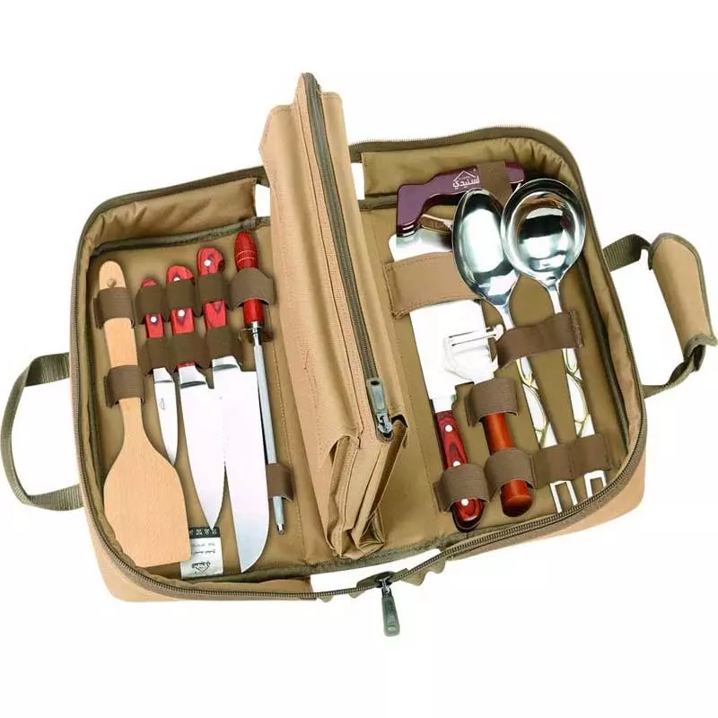 • ظروف سبک: لیوان فلزی، قاشق، چنگال، بشقاب نشکن و یک ظرف کوچک برای شست‌وشو.